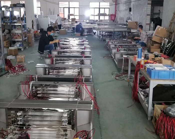 二、功能說明:隧道式殺菌機采用高能微波和紫外線輻照兩種滅菌法共同協(xié)助進行滅菌滅活,可以有效地殺滅在產(chǎn)品表面的細菌等微生物(如大腸桿菌、霉菌)或使細菌總數(shù)大副下降從而起到殺菌作用。 選擇適合的條件,盡可能減少對食品等產(chǎn)品原料或成品有效成分的破壞,達到無損殺菌的目的。通過對比試驗得出的結(jié)果,采用微波殺菌技術(shù)可以最低限度地減少食品原有成分,而且可以有效地控制細菌總數(shù)和致命菌數(shù)量,所以食品殺菌機是相對紫外線輻照滅菌法更適用紫外線殺菌。